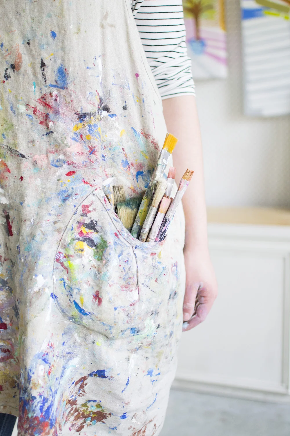Maybe you need a portrait to accompany your artwork when you submit for shows, galleries & publication. Perhaps you’re looking for some studio shots of yourself at work for your Instagram. I also always recommend a few photos that represent your brand itself, like some abstracts of your paint pallets, a closeup of your apron and brushes or a detail shot of fabric samples.