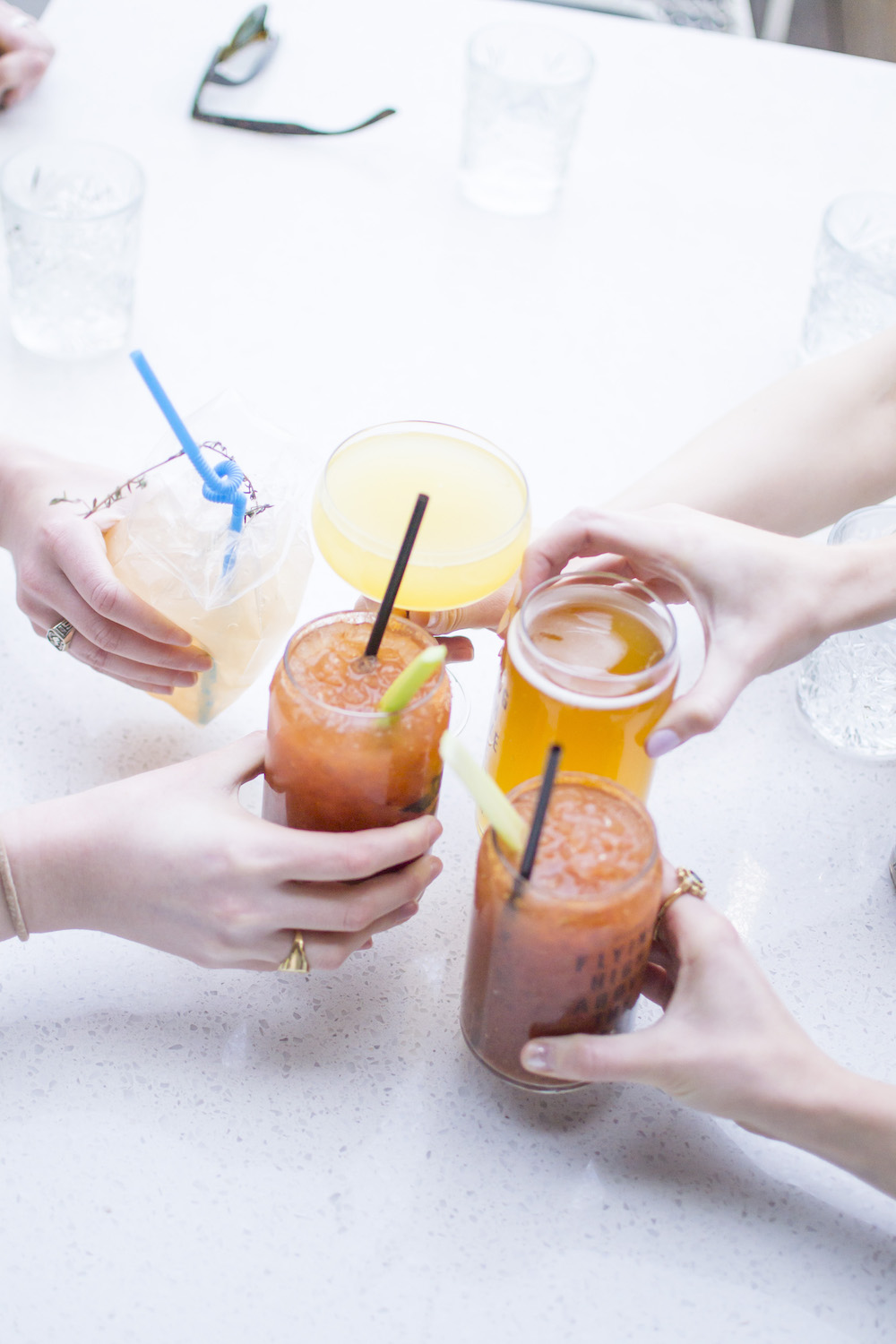 We rented the cutest AirBNB for the weekend, and I had so much fun with the decorations, including Sip Hip Hooray custom metallic Nash Bash napkins and cups, a big white Vroom Vroom balloon (a Nashville specialty) with fresh greenery tail, fresh flowers, neon name drink markers and a custom gold banner (both from Bracket), and seafoam fringe streamers. For party favors that doubled as table decorations, I chose Artifact Uprising square prints so that everyone got a picture with the happy couple to take home, along with the cutest little gold photo holders from Etsy. Highlights of our activities included dinner at Virago, a night our on Broadway, a morning of goat yoga at Shenanigoats, brunch at The Mockingbird, Bushwackers at Rebar, and a night in with Two Boots pizza. All in all, it was quite the Nash Bash!